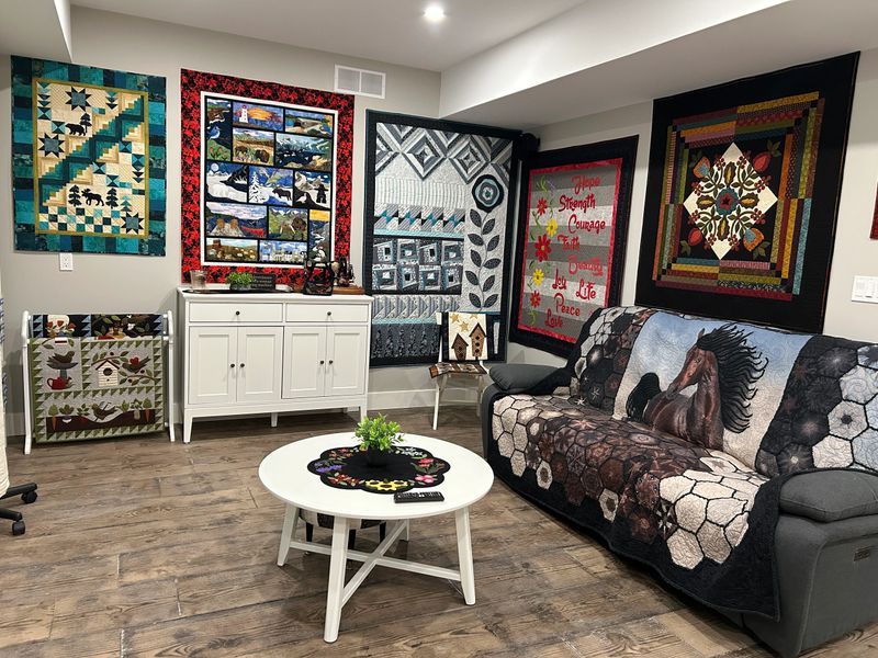Our cozy home studio in Kilsyth, Ontario provides a welcoming space for all your quilting needs. From custom designs to all-inclusive services, we work closely with you to ensure your quilts are completed to your highest standards.